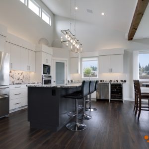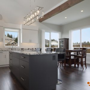 Spacious 14 foot ceilings, and vast amounts of light in every area of the home. Kitchen, dining and living room flow together with large glass windows and doors that lead to an outdoor entertainment area. Large 10X10 fir beams grace the front and back entrances of the home giving it a warm and inviting feel.